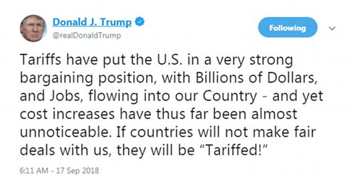 此前報道提到,美中貿(mào)易爭端不斷惡化,川普星期一向記者們表示,將在星期一股市收市后正式宣布對中國2000億進口商品加征關(guān)稅。
